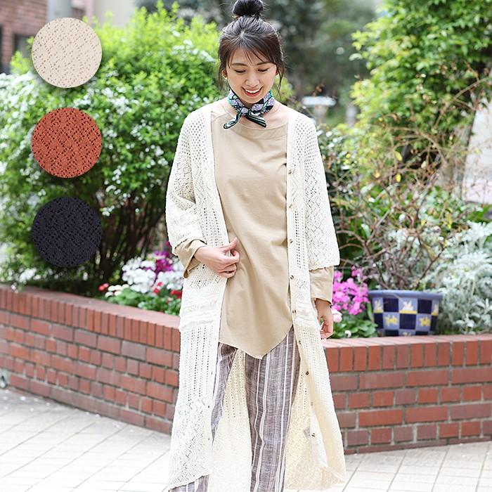 ロングカーディガン レディース 春 夏 カーディガン 羽織もの 薄手 長袖 春服 ニット ロング丈 透け感 オープンワークニット ロングカーディガン Jsccb103 チチカカ Paypayモール店 通販 Paypayモール